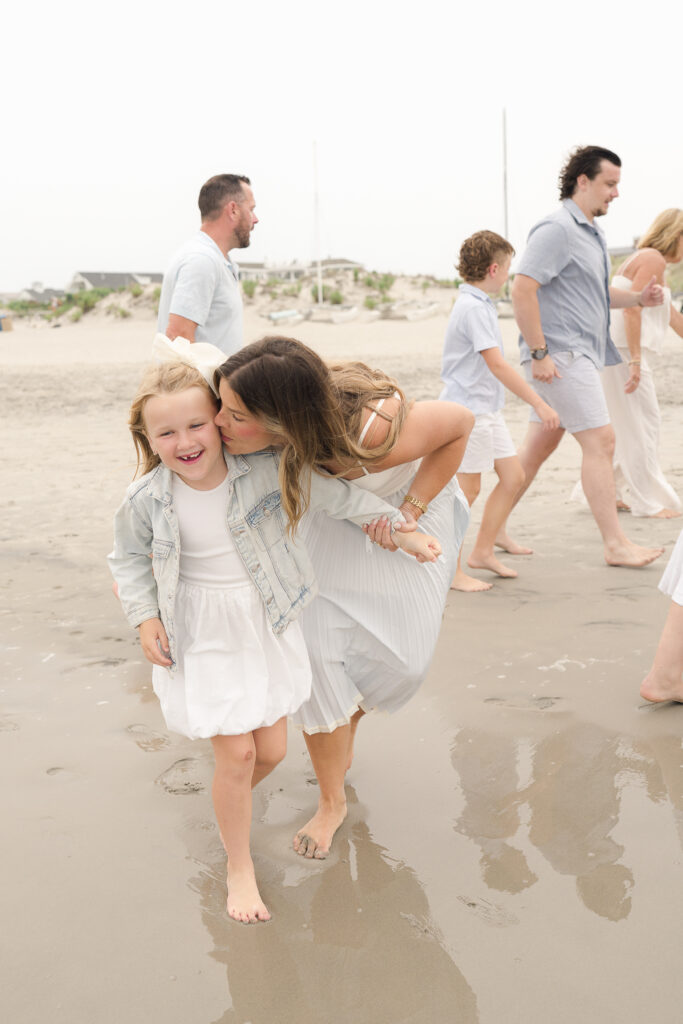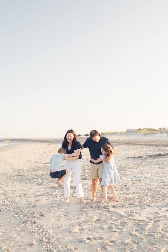 Movement creates magic. Walking along the shoreline, snuggling close, spinning kids in the air, splashing in the water, building sandcastles. These moments bring out real laughter and connection.