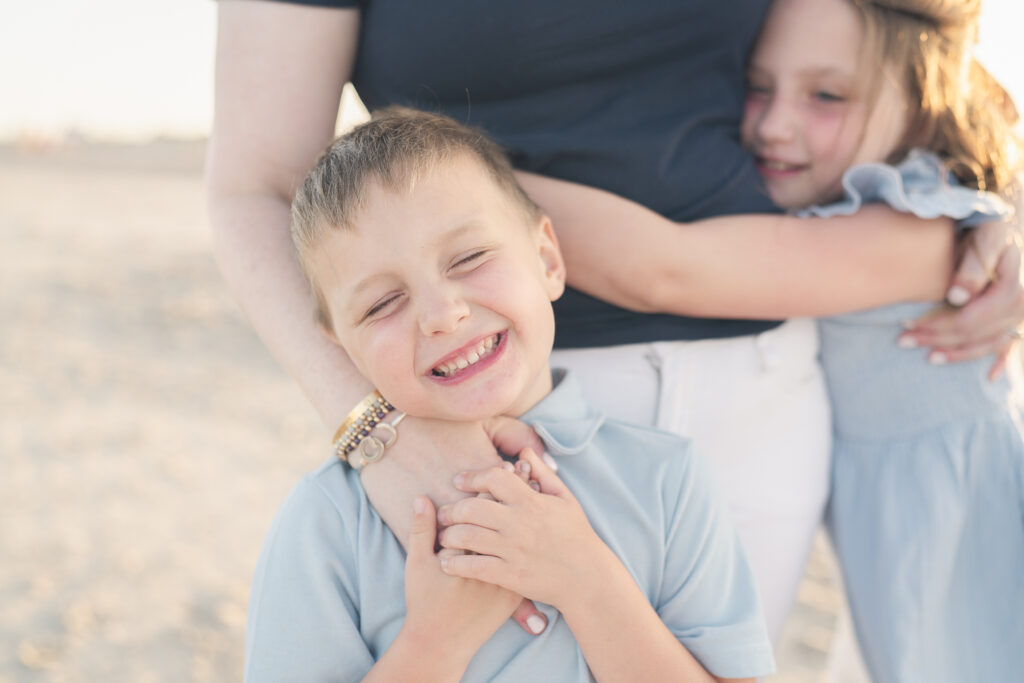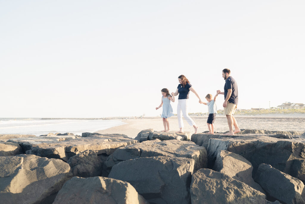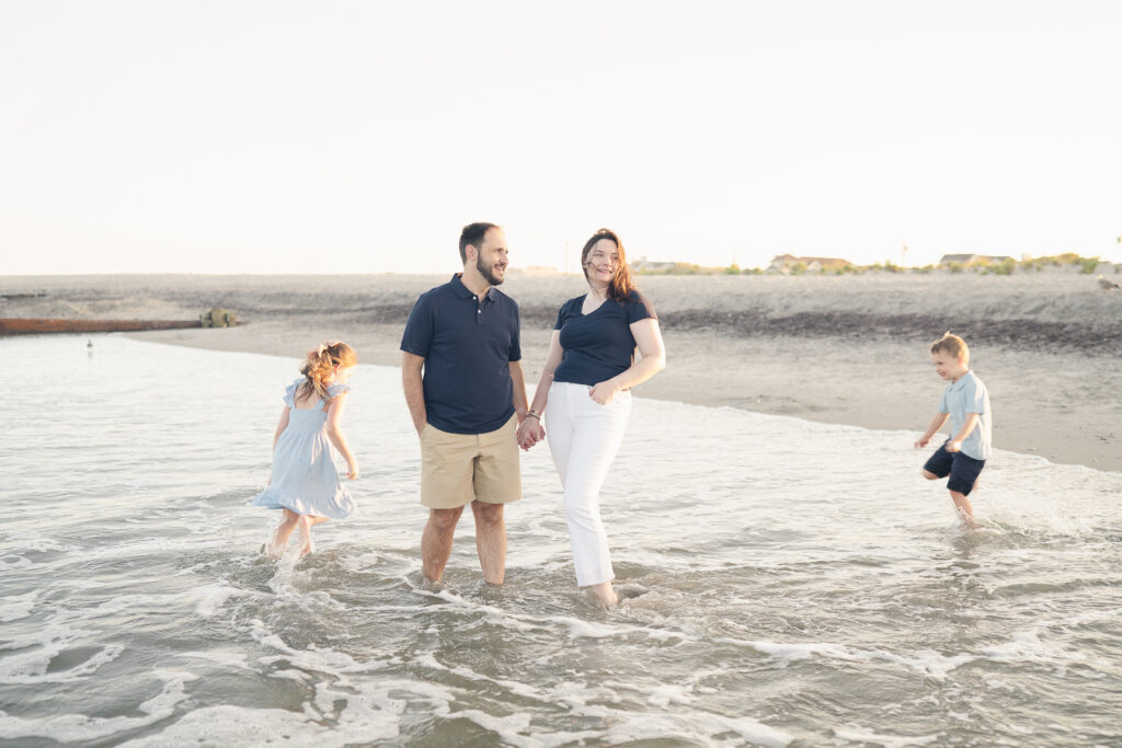 The best beach family photos happen during golden hour. That’s the hour just before sunset (or just after sunrise if you’re brave). The light is soft, warm, and flattering, and it wraps around your family instead of casting harsh shadows.
